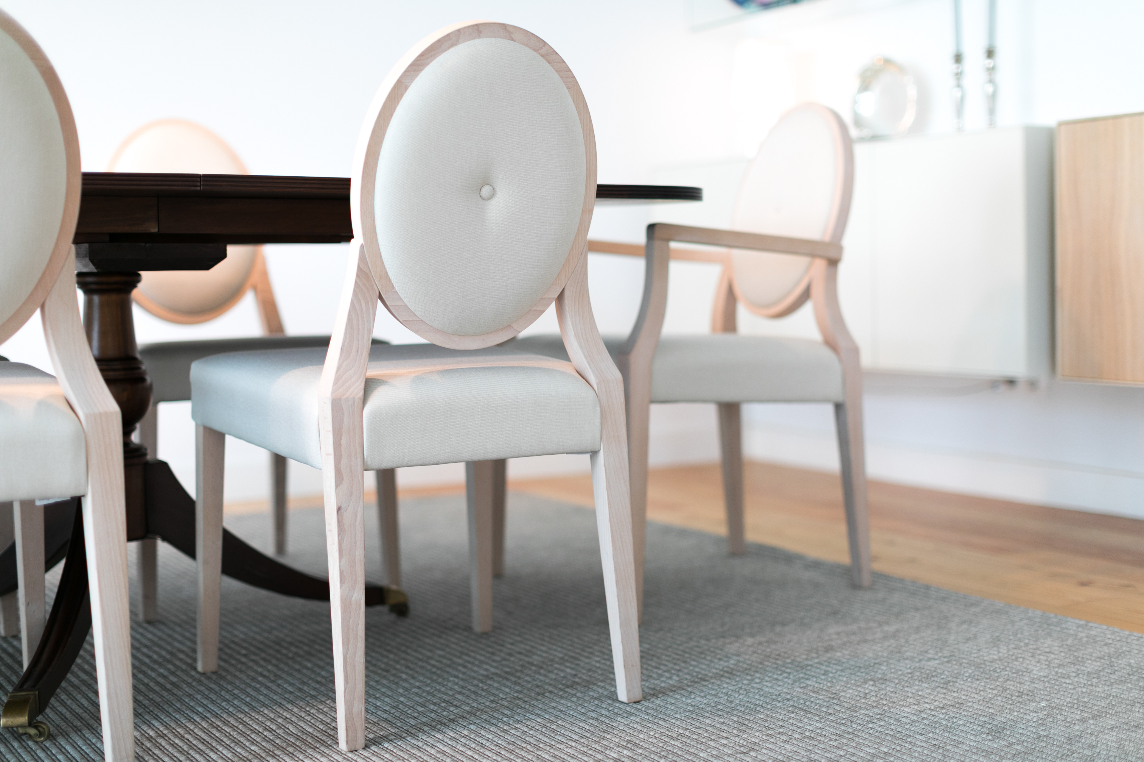 The request was that the room's ambience and new furnishings were light and contemporary and fit in with the owners' old family furniture.